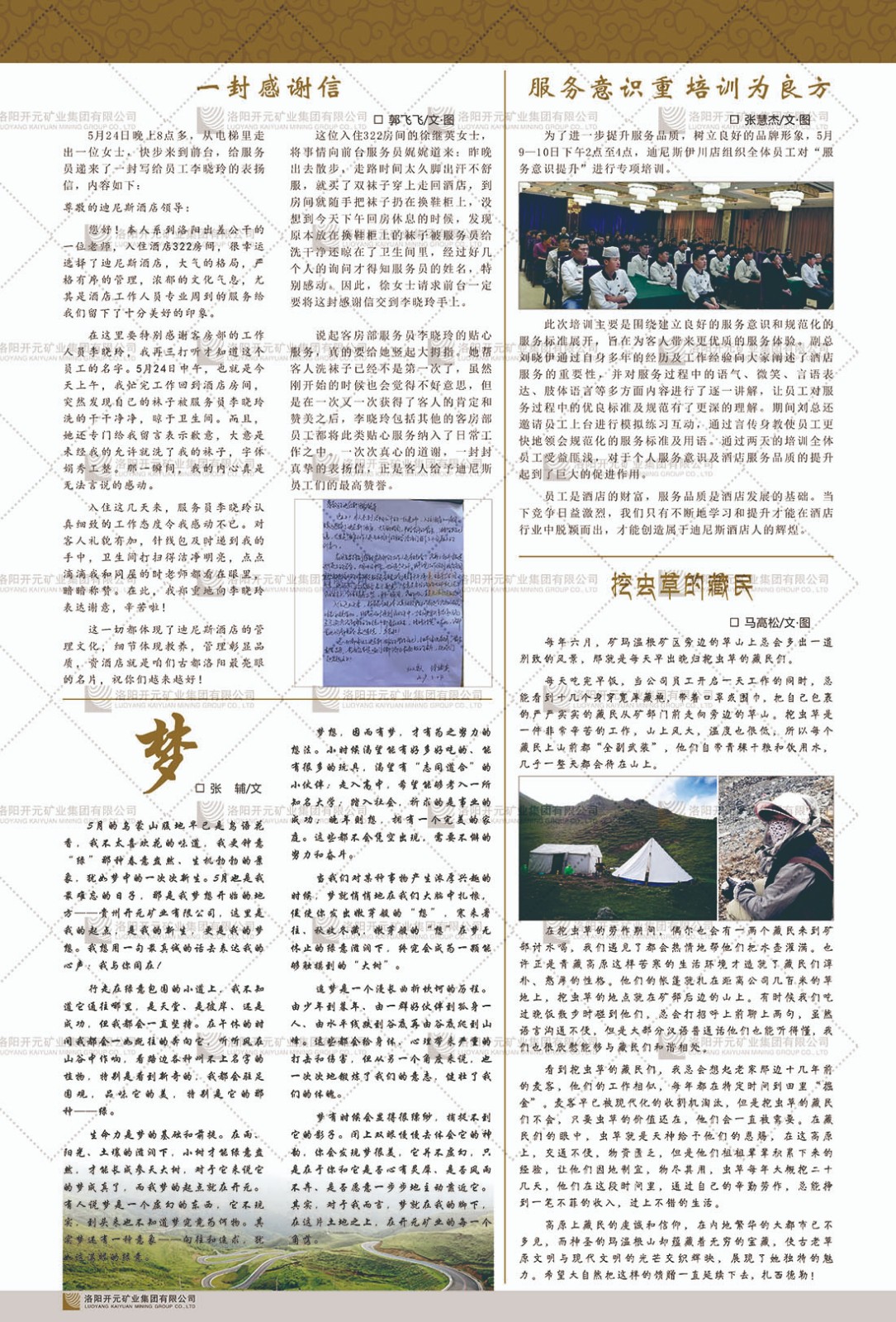 洛陽(yáng)開(kāi)元礦業(yè)集團(tuán)有限公司簡(jiǎn)介洛陽(yáng)開(kāi)元礦業(yè)集團(tuán)有限公司,始成立于2006年,位于洛陽(yáng)市開(kāi)元大道269號(hào)。集團(tuán)旗下共有十余家全資子公司,業(yè)務(wù)涉及有色金屬礦山開(kāi)發(fā)、礦產(chǎn)品購(gòu)銷(xiāo)與進(jìn)出口貿(mào)易、房地產(chǎn)開(kāi)發(fā)、文化藝術(shù)、企業(yè)管理與咨詢(xún)、資本投資等多個(gè)領(lǐng)域。2024年,集團(tuán)公司銷(xiāo)售總額達(dá)7.8億元。民建河南省委委員、民建河南省委企業(yè)委副主任、民建洛陽(yáng)市委委員、企業(yè)委主任、洛陽(yáng)民建企業(yè)家協(xié)會(huì)會(huì)長(zhǎng)許明月是公司創(chuàng)始人,現(xiàn)任洛陽(yáng)開(kāi)元礦業(yè)集團(tuán)有限公司董事長(zhǎng)。在礦業(yè)領(lǐng)域,洛陽(yáng)開(kāi)元礦業(yè)集團(tuán)擁有多家實(shí)力雄厚的子公司:貴州開(kāi)元礦業(yè)有限公司探、采礦權(quán)面積共11.33平方公里;興海縣銅鑫礦業(yè)有限公司探礦權(quán)面積8.76平方公里,礦山資源潛力巨大;2021年,開(kāi)元集團(tuán)與盧氏中科礦業(yè)有限公司開(kāi)展戰(zhàn)略合作。盧氏中科礦業(yè)有限公司專(zhuān)注于有色金屬的浮選、加工和銷(xiāo)售,擁有強(qiáng)大的技術(shù)支撐平臺(tái),是集探、采、選、冶、研為一體的中大型綜合礦業(yè)企業(yè)。目前,盧氏中科王家河1000噸選礦廠已成功投產(chǎn),雙河金礦、柳關(guān)欒盧鉛鋅礦相繼順利開(kāi)工,樓房銀礦與圪老灣鉛鋅礦的深部探礦重大突破,標(biāo)志著礦山版圖取得重大進(jìn)展,為開(kāi)元集團(tuán)后續(xù)發(fā)展奠定了堅(jiān)實(shí)基礎(chǔ)。在文化傳媒領(lǐng)域,洛陽(yáng)市明月美術(shù)館通過(guò)豐富多樣的藝術(shù)展覽、學(xué)術(shù)研討和公共教育活動(dòng),努力打造一個(gè)集展覽、交流、教育、研究為一體的綜合性藝術(shù)平臺(tái)。此外,在金融投資領(lǐng)域,開(kāi)元集團(tuán)旗下的北京明峰資本管理有限公司專(zhuān)注于投資具有高增長(zhǎng)潛力的優(yōu)秀企業(yè),特別是高科技、新能源、環(huán)保等新興產(chǎn)業(yè),為客戶(hù)提供個(gè)性化的資產(chǎn)配置服務(wù)。在做好企業(yè)經(jīng)營(yíng)的同時(shí),開(kāi)元集團(tuán)始終不忘企業(yè)的社會(huì)責(zé)任和家國(guó)情懷,以突出的愛(ài)心公益事跡,開(kāi)展了一系列公益慈善活動(dòng):“民建林”公益事業(yè)通過(guò)“思源基金”“幫幫公益”線(xiàn)上公益平臺(tái),與眾多愛(ài)心人士籌措資金20余萬(wàn)元;資助541名貧困大學(xué)生共計(jì)270余萬(wàn)元,推進(jìn)“數(shù)字助力——河南AI人才培養(yǎng)”;捐款10萬(wàn)元,馳援京津冀、黑龍江洪水地質(zhì)災(zāi)害……公司于2017年底被洛陽(yáng)市慈善總會(huì)評(píng)為“洛陽(yáng)慈善風(fēng)云榜——十大愛(ài)心集體”。洛陽(yáng)開(kāi)元礦業(yè)集團(tuán)有限公司秉承持續(xù)發(fā)展理念,憑借多年來(lái)良好的企業(yè)信譽(yù)與經(jīng)營(yíng)業(yè)績(jī),與全國(guó)多家企業(yè)建立了良好合作關(guān)系,受到社會(huì)各界的一致好評(píng),多次榮獲“納稅標(biāo)兵”“先進(jìn)企業(yè)”“招商引資模范企業(yè)”等榮譽(yù)稱(chēng)號(hào)?;赝麃?lái)時(shí)路,開(kāi)元人勠力同心,以“闖”的精神和“創(chuàng)”的勁頭,一路披荊斬棘,踏過(guò)千山萬(wàn)水;展望新未來(lái),開(kāi)元人凝心聚力,不執(zhí)于“舊”,無(wú)畏于“新”,秉承“勇于跨越,追求卓越”的企業(yè)精神,乘著國(guó)家高質(zhì)量發(fā)展新征程的東風(fēng),跨過(guò)高山,越過(guò)大海,向著集團(tuán)多元化、國(guó)際化的目標(biāo),逐夢(mèng)遠(yuǎn)航,跨越前行!